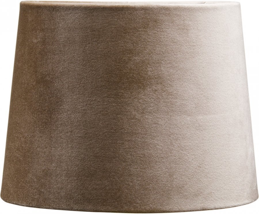 Sofia-varjostin. Pyöreä lampunvarjostin sileää samettia. Korkeus 25 cm. Alareunan halkaisija 35 cm, yläreunan 30 cm. E27 rengaskiinnike 4,5 cm alareunasta.