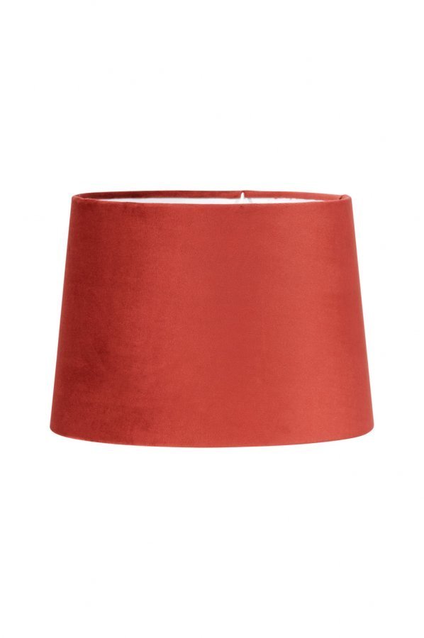 Sofia-varjostin. Pyöreä lampunvarjostin sileää samettia. Korkeus 25 cm. Alareunan halkaisija 35 cm, yläreunan 30 cm. E27 rengaskiinnike 4,5 cm alareunasta.