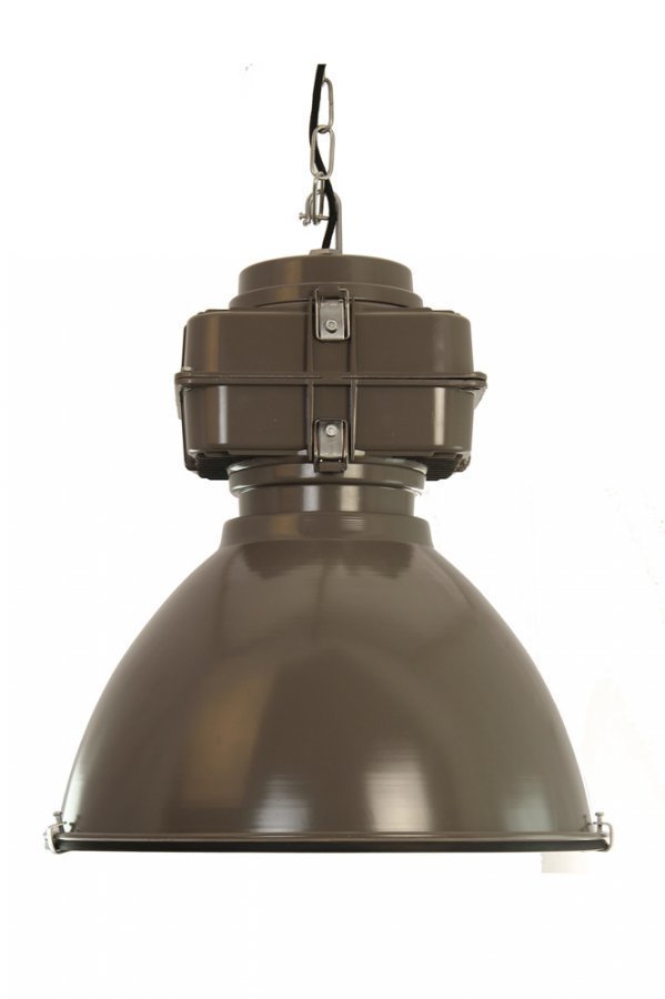 Teollistyylinen kattovalaisin. Kruunupistoke. Metallinen kattokuppi ja kiinnike kattokoukulle. Halkaisija 46 cm, korkeus 56 cm. Johdon pituus 100 cm. E27. Enintään 60 W.