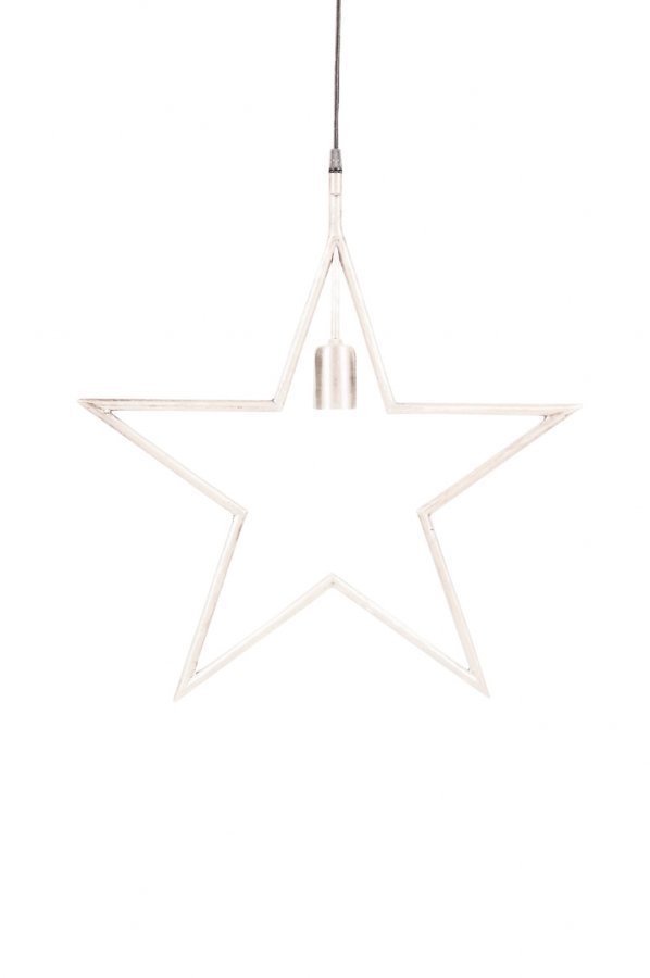 Riippuva Tindra-valotähti. Metallia, teollisuustyylinen malli. Korkeus 48 cm, leveys 45 cm, syvyys 4,5 cm. Lampunkanta E27. Enintään 40 W. Kangaspäällysteinen johto 3,5 m, jossa seinäpistoke. Valonlähde ei mukana.