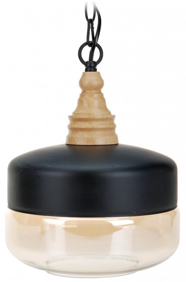 Riippuvalaisin puuta / lasia. Koko 25 x 25 x 30 cm. – liitosjohto 80 cm – E27 – maks. 25 W