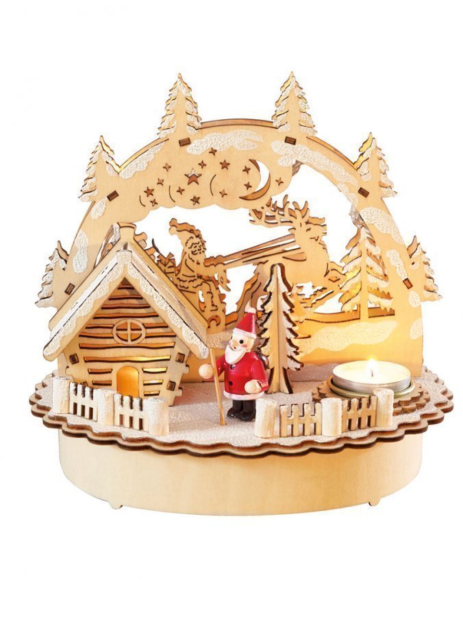 Kaunis puinen soittorasia, joka soittaa joululauluja. Valmistettu vanerista. Sisällä tunnelmallinen LED-valo. Mitat n. 22 x 15 x 20 cm. Paristokäyttöinen, 2x AA-paristo (eivät sisälly toimitukseen).