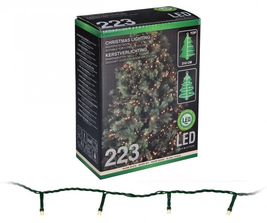 223-osainen puuhun ripustettava led-valosarja ulkokäyttöön. Riittää noin 2,1 m pituiseen kuuseen. – väri