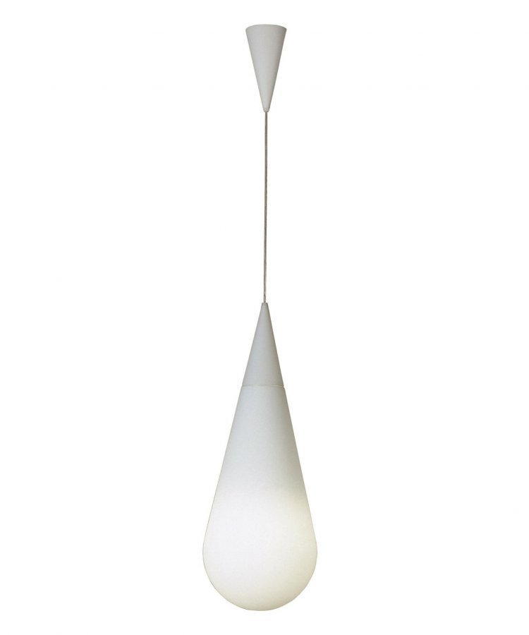 Design: Andrea Branzi for Rotaliana. Konsepti: Goccia H1 Riippuvalaisin roikkuu huoneessa kauniin pisaran lailla. Sen valo muistuttaa lämpöisistä ja sateisista kesäpäivistä, jolloin auringon valo pääsee heijastumaan puista putoavista pisaroista. Riippuvalaisin luo pehmeän ja kauniin valon ja on täydellinen asennettavaksi omillaan tai osana rykelmää. Kattokupu on tehty simuloimaan valaisimen heijastusta, mikä tekee kokonaisuudesta todella symmetrisen. Valaisin on valmistettu puhalletusta lasista, jonka seurauksena lasissa voi olla eroavaisuuksia ja näkyä käsityön jälki.