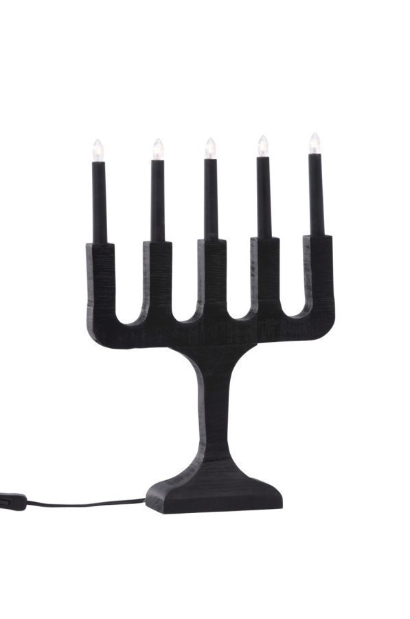 Tyylikäs, puhdaslinjainen muotoilu, joka sopii useimpiin sisustustyyleihin. Materiaali: Puuta. Koko: Korkeus 44 cm. Leveys 30 cm. Syvyys 7,5 cm. Kuvaus: Sähkökynttelikkö mattapintaiseksi maalattua puuta. Sisäkäyttöön. Johto 170 cm, virtakytkin johdossa. Lamput mukana. Kanta/lamppu: 5 x 3 W. Vinkki: Huoneessa tulee olla monta valonlähdettä. Sopiva määrä normaalikokoisessa huoneessa on 6–8 valaisinta.