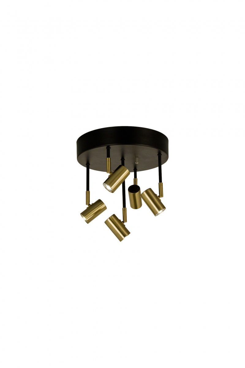 Scan Lamps Gusto led on näyttävä ja selkeälinjainen kattospotti pyöreänä viidellä suunnattavalla sekä eri tasossa olevalla valopisteellä. Turvallisilla ja energiaa säästävillä Led-valolähteillä, jotka vielä vaihdettavissa ja löytyy varaosana tarvittaessa. Sis. 5x5W 400lm 3000 K ledit. Värinä hienostunut ja trendikäs mustan ja mattamessingin yhdistelmä. Himmennettävä. Asennusta helpottaa kätevä kattokoukkukiinnitys ja pistoke. Näyttävään sisustukseen halk 30 cm korkeus 32 cm.