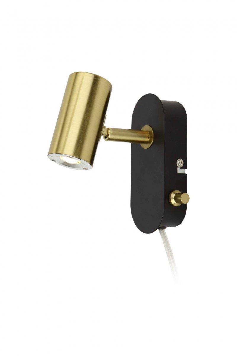 Scan Lamps Gusto 1 on selkeälinjainen ja minimalistinen, suunnattava seinäspotti turvallisella ja energiaa säästävällä Led-valolähteellä, joka vielä vaihdettavissa ja löytyy varaosana tarvittaessa. Värinä hienostunut ja trendikäs mustan ja mattamessingin yhdistelmä. Valaisimessa portaaton himmennin seinälevyn sivussa. Seinälevyn halk. 5,5×13 cm. Valaisin sis. myös 250 cm johdon.
