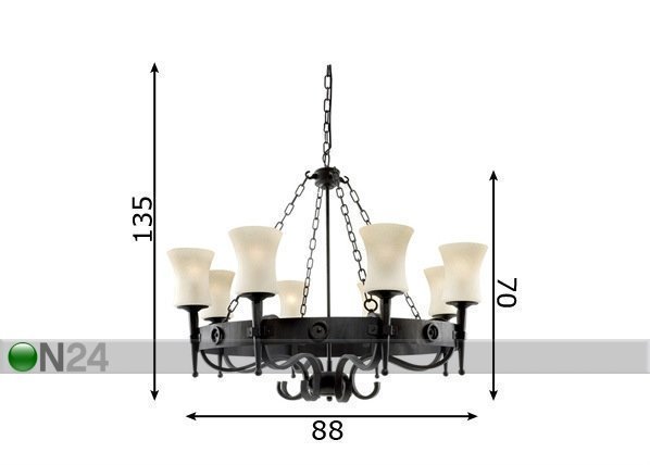 Retrotyylinen valaisin – materiaali. takorauta – teho: 8 x E27 max 60W (ei… Lue lisää »