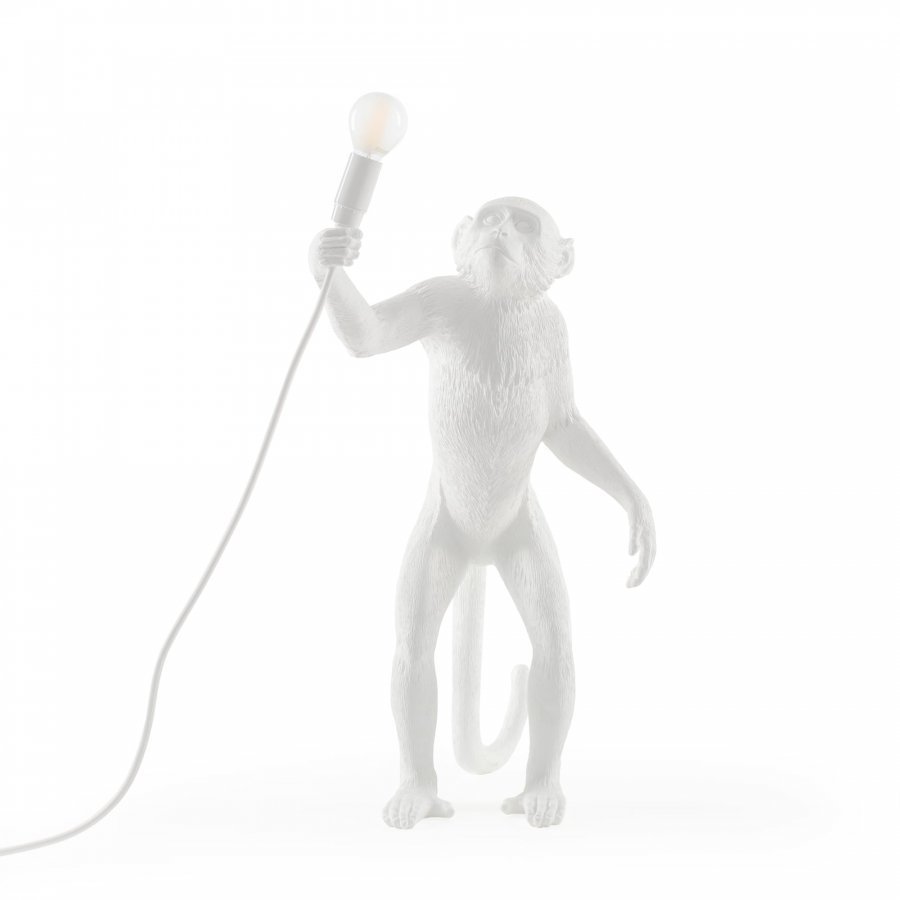 Apina-valaisin, Seletti. Erittäin suosittu ja hurmaava lamppu, jota on neljää eri mallia (lattiavalaisin, kattolamppu, pöytälamppu ja köydestä ripustettava) mustavalkoisena. Koristeellinen hehkulamppu on säädettävissä kaikille malleille – se voidaan laittaa apinan kämmenelle tai ripustaa roikkumaan. Valmistettu hartsista. Vain sisäkäyttöön.
