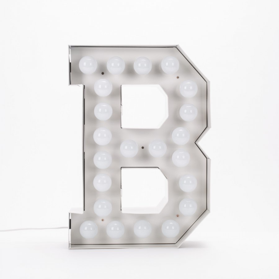 Vegaz-kirjainlamppu Selettistä. Kaunis ja kestävä metallilamppu, joka säilyttää korkean laatunsa ja pysyy hyvin pystyssä. LED-valot luovat lämmintä ja miellyttävää hohtoa. Ripusta se seinälle tai laita se kirjahyllyyn tai lattialle. Saatavana kirjaimilla A-Z sekä &-merkillä.