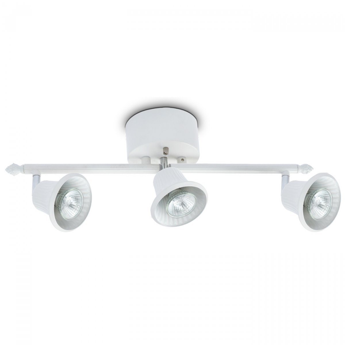 Yksinkertainen ja ajaton mattavalkoinen kattovalaisin kolmella helposti suunnattavilla valolähteillä ja kääntyvillä varsilla.
