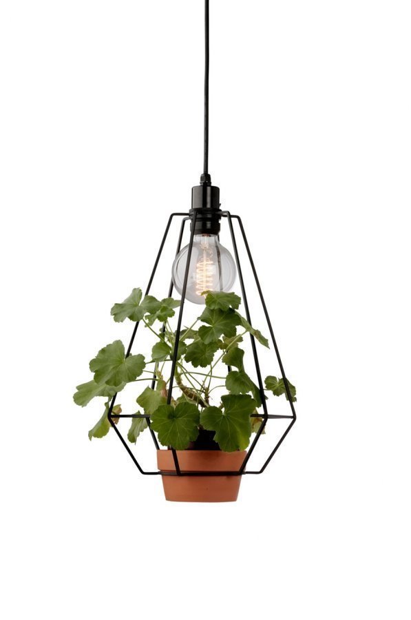 Sisusta valolla ja viherkasveilla. Metalliteline ja terrakottaruukku, johon voit asettaa viherkasvin. Anna kasvin kiertää telinettä tai rönsyillä vapaasti ruukun ympärillä. Seinäpistoke ja paksu ulkojohto. Materiaali: Metallia ja terrakottaa. Koko: Korkeus 50 cm, ø 27 cm. Kuvaus: Kattovalaisin metallia, ruukku terrakottaa. Johto 5 m. Lamppu ei mukana. Kanta/lamppu: 1 x E27, enintään 60 W:n hehkulamppu tai enintään 11 W:n energiansäästölamppu. Vinkki: Kierrä johtoa muutaman kerran ja ripusta valaisin kattokoukkuun. Valitse lamppu, jossa on koristeellinen hehkulanka.