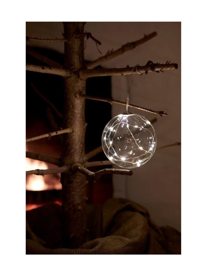 Suupuhalletusta lasista valmistettu valopallo on elegantti ja tunnelmallinen tapa valaista kotia talviaikaan. Pallossa on 16 kirkasta LED-valoa ja 6 tunnin ajastin. Paristokäyttöinen valopallo tarvitsee toimiakseen 2 AAA-paristoa, jotka eivät sisälly pakkaukseen. Pallon halkaisija on 10 cm.