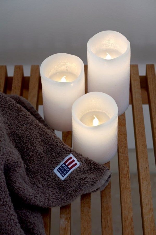 Paristokäyttöinen valkoinen Sirius Tenna LED-vahakynttilä. – halkaisija 7 cm – paristotarve/kynttilä: 3 x AAA (ei sisälly pakkaukseen) – ajastussäätö: 8 h/ 4 h/Pois päältä – kynttilän lämpötila maks. 30 °C – sisäkäyttöön