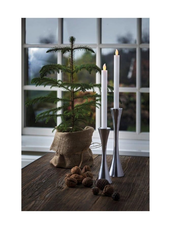 Pakkauksessa on kaksi sisäkäyttöön tarkoitettua vahakynttilää, joissa on paristokäyttöinen LED-valo. LED-kynttilä on turvallinen ja tunnelmallinen vaihtoehto oikealle kynttilälle. Kynttilän pohjassa on virtakatkaisin ja 8 tunnin ajastin. Yksi kynttilä vaatii toimiakseen kaksi AAA-paristoa, jotka eivät sisälly pakkaukseen. LED-kynttilän mita ovat ø 2 x 25 cm.