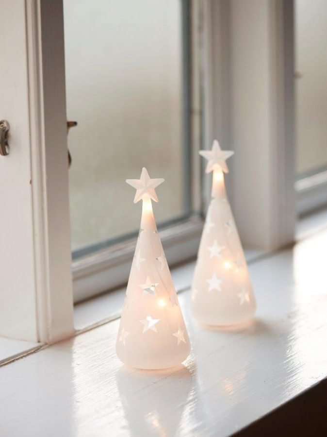 Lasiset koristekuuset valaisevat LED-lampuillaan. Pakkauksessa on kaksi CR2032-paristoilla toimivaa kuusta. Paristot toimitetaan. Vain sisäkäyttöön.