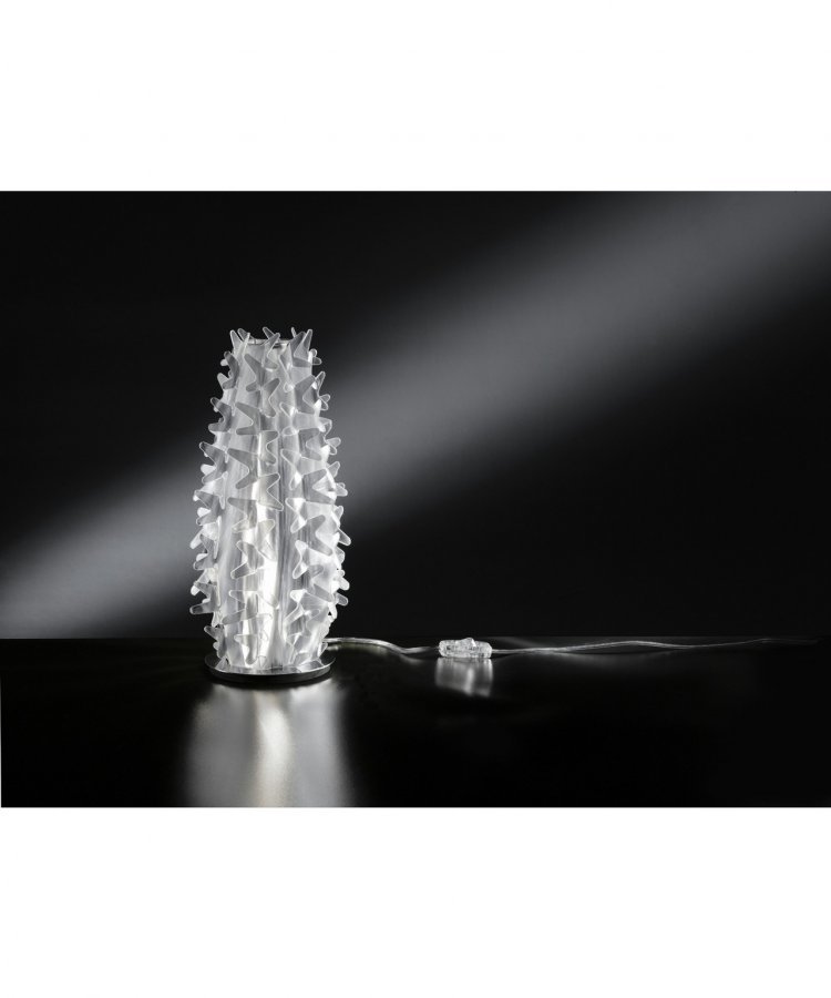 Design: Adriano Rachele for SLAMP. Konsepti: Valaisimella on taiteellinen ja harkittu muotoilunsa. Kuten nimestä voidaan päätellä, muotoilija Adriano Rachele inspiroitui aina suositusta kaktuskasvista, joka voidaan löytää kodeista ympäri maailman. Varjostimen kaunis leikkaus luo ihastuttavan valon ja rauhoittavan, kodikkaan tunnelman. Lentiflex materiaalina on helposti puhdistettavissa ja sitä voidaan huuhdella juoksevan veden alla. Vaikka valaisin ei näytä helpoiten puhdistettavalta, muotoilija on ajatellut tarkoin materiaalivalintoja. Valaisin on saatavana kahdessa eri koossa ja se toimitetaan kauniissa pakkauksessa.