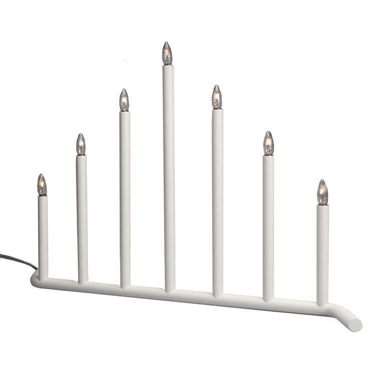 SMD:n Advent-kynttelikkö, jossa on seitsemän kynttilää. Voita valita valkoisena tai harmaana. Suunnittelu: Stina Sandwall. Advent on yksinkertaisen kaunis sähkökynttelikkö / adventtikynttelikkö. Maalattua metallia.