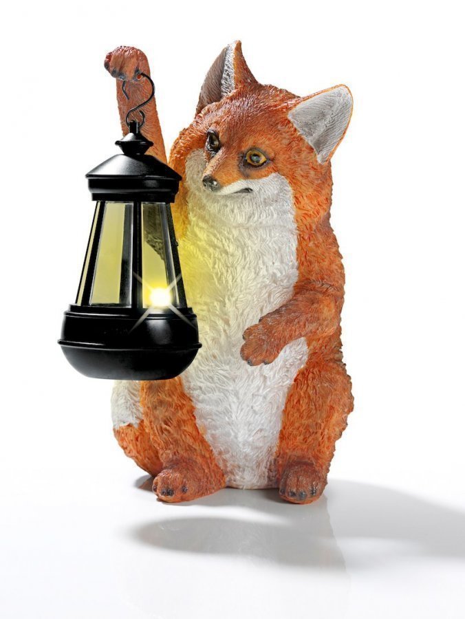 Aurinkokennollinen koristevalaisin, jossa on hauska kettuaiheinen muotoilu. Kettu pitelee lyhtyä, jonka sisällä on LED-valo. Valo toimii aurinkopaneelilla, jonka valosensorit sytyttävät lampun pimeän tullen. Valaisee jopa 8 tuntia. Roiskevesisuojattu ja vakaasti seisova. Materiaali polyresiiniä, PP-muovia. Mukana 1,2 V Ni-MH -akku, 600 mAh. AA-paristo.