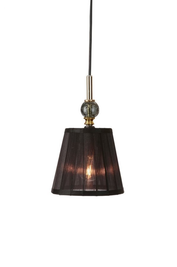 Ylellinen ja tyylikäs. Linjakkaan metallin, muodokkaan lasin ja läpikuultavan voileen kontrastia. Materiaali: Metallia, lasia ja kangasta. Koko: Korkeus 24 cm. Varjostimen korkeus 12,5 cm, ø 15 cm. Kuvaus: Ripustin metallia, jossa lasikoriste. Varjostin voileeta. Johdon pituus 120 cm. Lampulle, joka kuuluu energialuokkiin D–A++. Kanta/lamppu: 1 x E14, enintään 25 W:n hehkulamppu tai enintään 5 W:n energiansäästölamppu. Vinkki: Hyvännäköinen toisen samanlaisen – tai miksei erilaisenkin – valaisimen parina