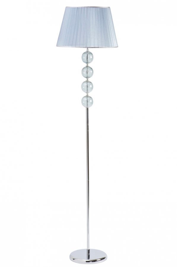 Pyöreät lasikuulakoristeet. Varjostin organzanauhaa. Korkeus 152 cm, ø 40 cm. Johdon pituus 70/180 cm. E27, enintään 60 W.