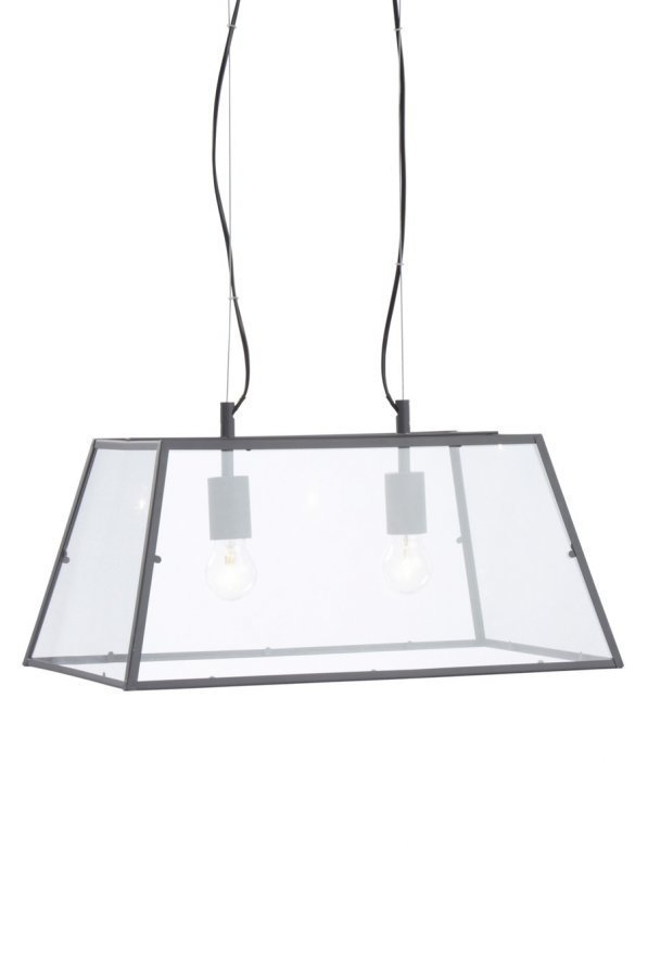 Ripusta valaisin vaikka ruokapöydän tai keittiön saarekkeen ylle. Kirkas lasi antaa valon levitä joka suuntaan. Materiaali: Maalattu metallirunko. Kirkasta lasia. Koko: Korkeus 25 cm, pituus 55 cm, syvyys 34 cm. Johdon pituus: 100 cm. Hehkulamppu/kanta: 2 x E27, enintään 60 W:n hehkulamput tai enintään 11 W:n energiansäästölamput. Kuvaus: Kattovalaisin, jossa kaksi lamppua. Maalattu metallirunko ja kirkasta lasia. Kangaspäällysteinen johto. Vinkki: Valaisimella on väliä. Himmentimen asentamalla saat säädettyä valon määrää helposti.