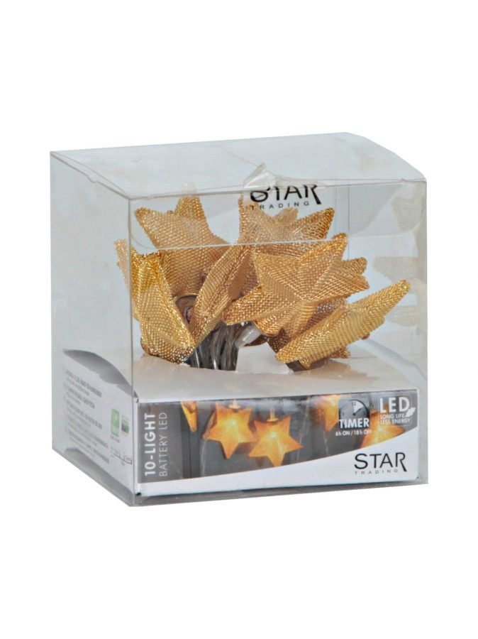 Anna tähtien tukkia tunnelmallisesti! Paristokäyttöisessä sisävalosarjassa on ajastin ja 10 metallilankatähteä, joiden sisällä on yksi kirkas LED-lamppu. Pienessä valosarjassa on 1,85 metrin johto, jossa on 15 cm:n välein yksi LED. Viimeisen LEd:in ja paristokotelon välinen etäisyys on 50 cm. Tuote vaatii toimiakseen 3 kappaletta AA-paristoja, jotka eivät sisälly pakkaukseen.