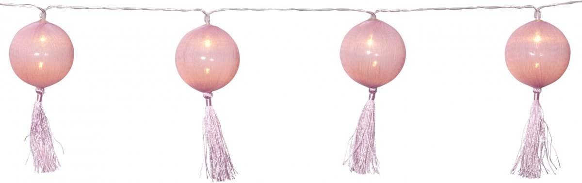 Vaaleanpunainen valosarja LED-valoilla, sisäkäyttöön. Pituus 135 cm.