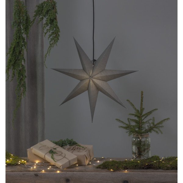 Harmaa paperitähti sisäkäyttöön, halkaisija 70 cm. Virtajohdon pituus 350 cm.
