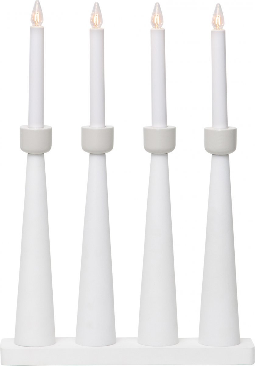 Sisäkäyttöön tarkoitettu valkoinen 4-haarainen puukynttelikkö.