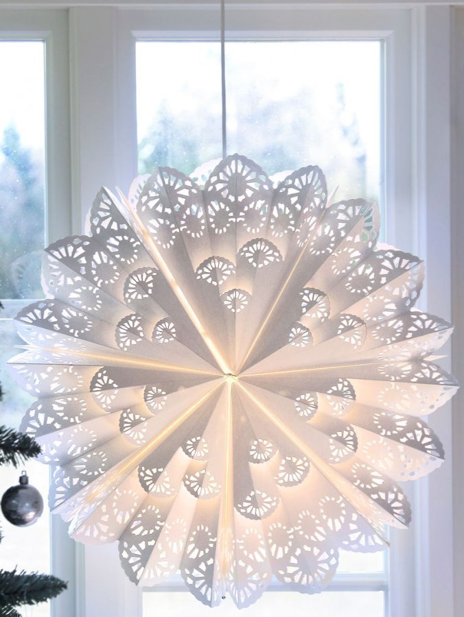 Valaiseva, ikkunaan ripustettava paperitähti, jossa on ainutlaatuinen muotoilu. Lampun kanta E14, valkoisen johdon pituus 3,5 metriä. Soveltuu A++ E-luokan valonlähteille. 230 V AC. Tähden halkaisija n. 60 cm.
