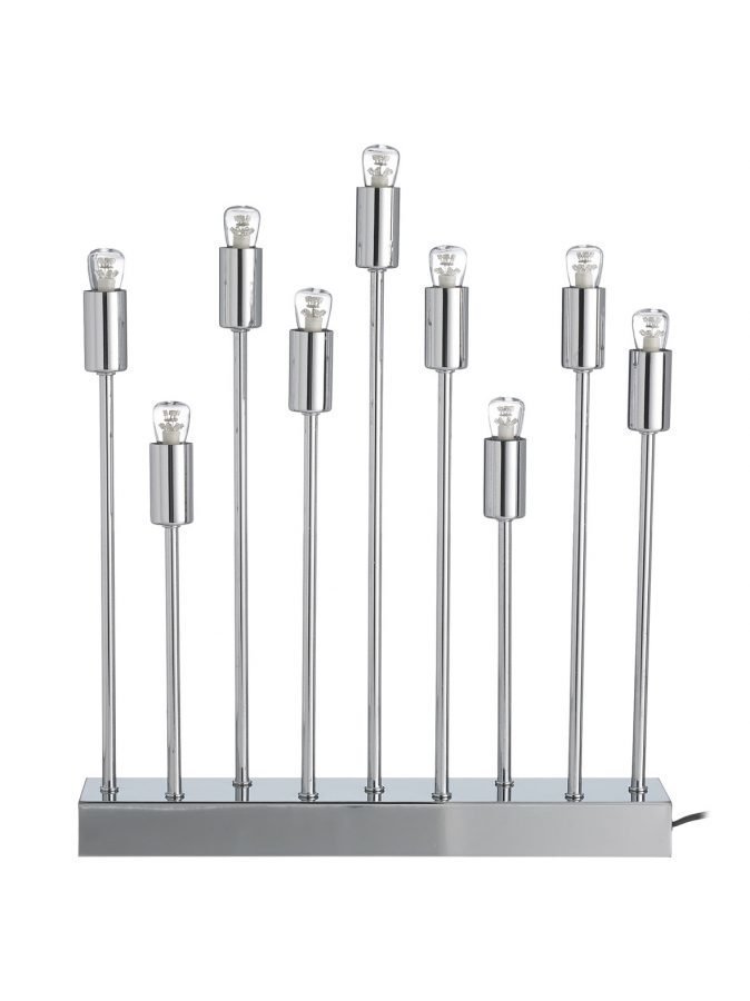 Tyylikkäässä kynttelikössä on yhdeksän LED-kynttilää. Katkaisimella varustetun johdon pituus on 1,8 metriä. Mitat ovat 50 x 42 cm. Kynttelikkö on valmistettu metallista ja muovista.