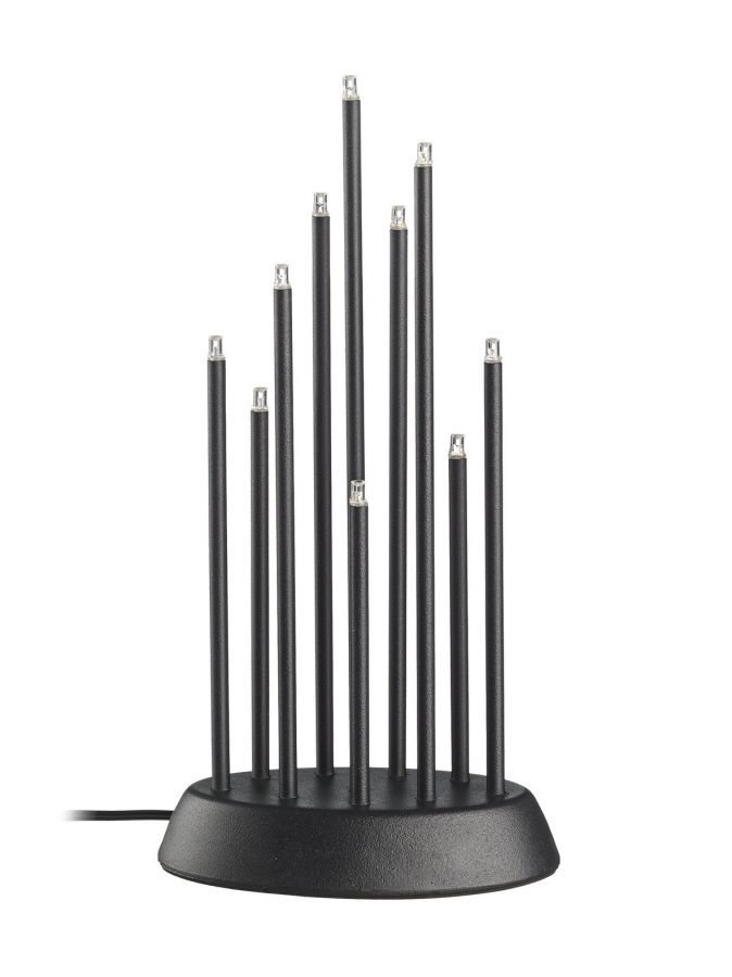 Tyylikkäässä kynttilänjalassa on 10 kappaletta LED-valoja. Johdon pituus on 1,8 metriä. Vain sisäkäyttöön. Muuntaja 45V/DC 0,9VA. Materiaali on metallia ja muovia.