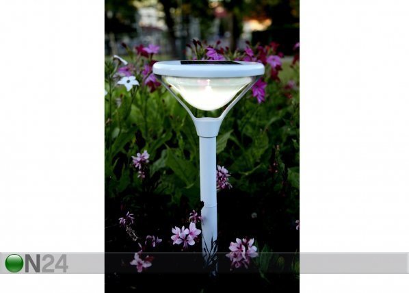 Valkoinen aurinkoenergialla toimiva LED puutarhavalaisin – valojen lukumäärä: 1 LED valoa – aurinkopaneelissa… Lue lisää »