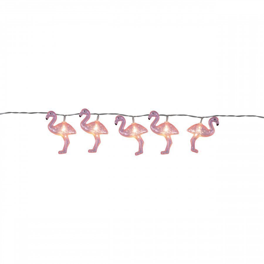 Paristoilla toimiva valoketju tuotemerkiltä Star Trading. 10 lämpimänvalkoista LED-lamppua. Valoketju sopii koristamaan juhlia tai piristämään arjen sisustusta. Valoketju on läpinäkyvä ja siinä on koristeena vaaleanpunaisia flamingoja. Sisäänrakennetun ajastimen ansiosta on valo on helppo säätää päälle.
