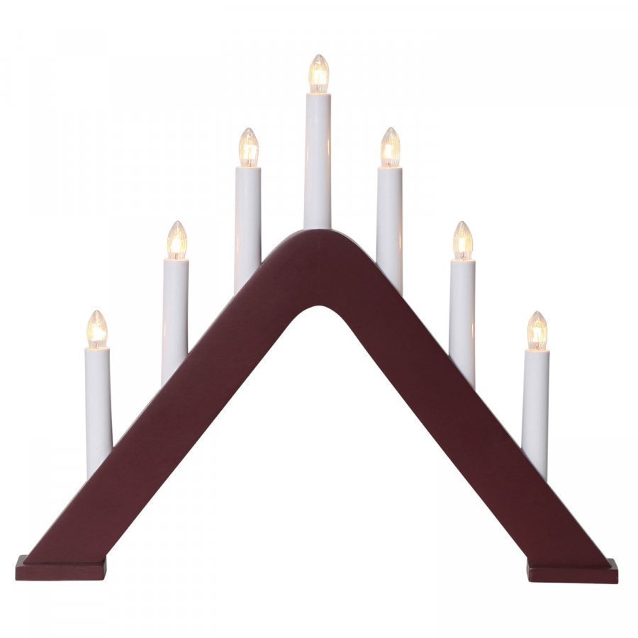 Kauniisti muotoiltu punainen 7-haarainen puinen kynttilänjalka. Sopii hienosti ikkunalle kauniiksi ja kodikkaaksi sisustusesineeksi. Luo kotiin miellyttävää adventtitunnelmaa.