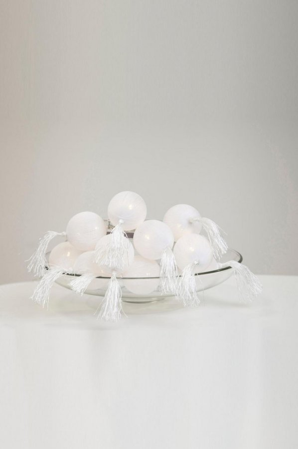 Valoköynnös sisäkäyttöön. Tupsut. Upea sisustuselementti kotiisi. Pallo 6×14 cm tupsujen kanssa, kokonaispituus 1,35 metriä. Sisäänrakennettu ajastin – loistaa haluamaasi aikaan. Toimii kolmella AA-paristolla. Tilaa paristot erikseen.