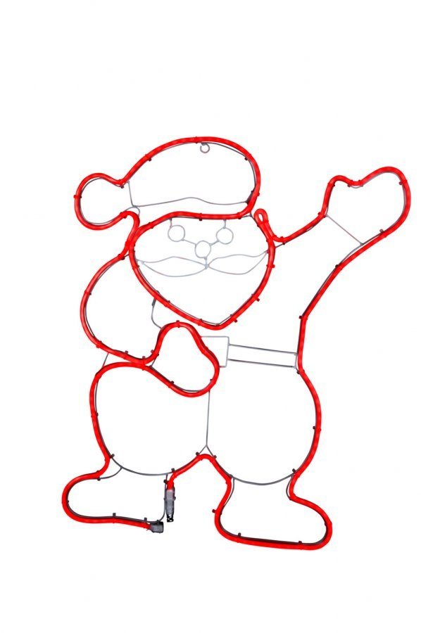 Joulupukin muotoinen koristevalaisin ulkokäyttöön. Leveys 61 cm, korkeus 78 cm. 300 punaista LED-lamppua. IP44. 1,5 m:n johto.