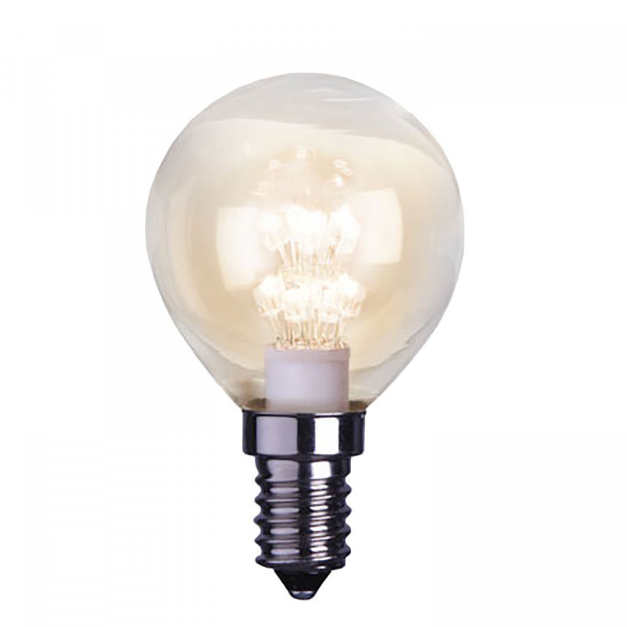 LED-lamppu E14 P45 decoration dip merkiltä Star Trading. Valonlähteen 0,9W vastaa perinteisen hehkulampun 7W. Lampun pitkä paloaika on n. 15000 tuntia ja valovirta 75 lumenia tekee LED-lampusta tulevaisuuden valonlähteen. Valinta niille, jotka haluavat kestävän ja energiaa säästävän valonlähteen. LED-lamppu säteilee lämmintä valkoista valoa.