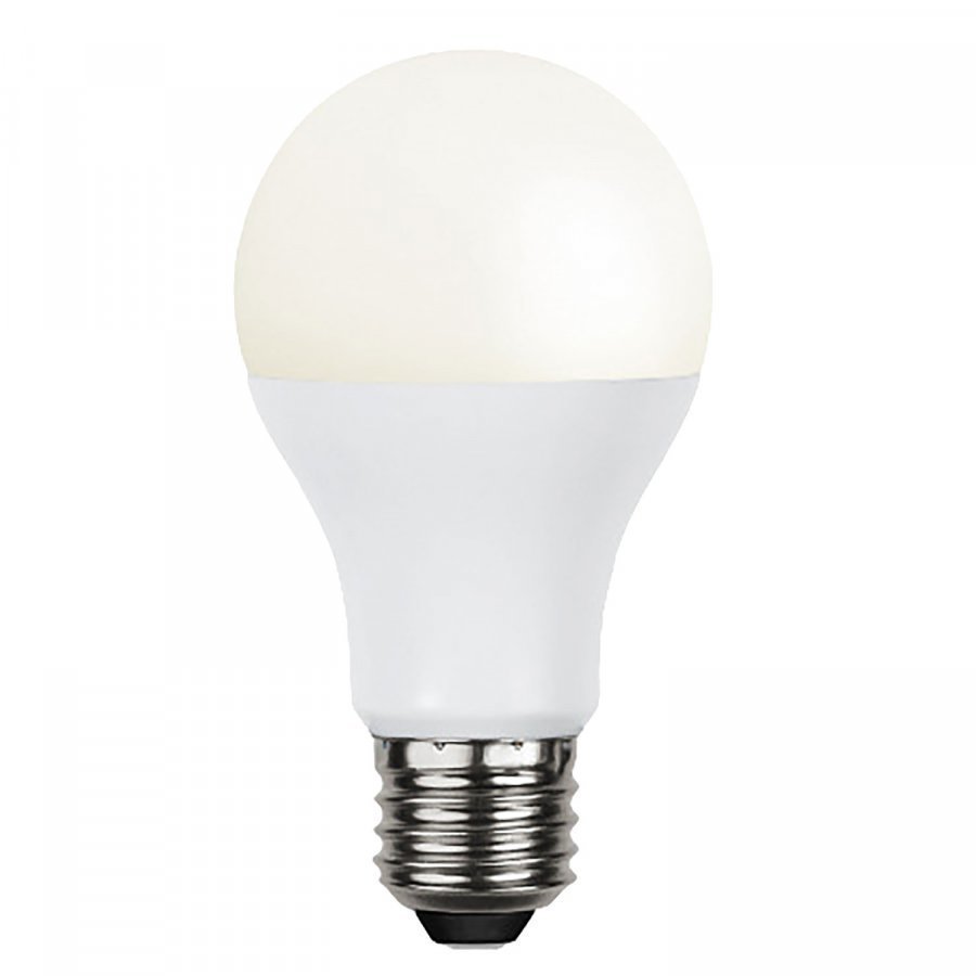 LED-lamppu E27 A60 opague Ra90 merkiltä Star Trading. Valonlähteen 14W vastaa perinteisen hehkulampun 99W. Lampun pitkä paloaika on n. 25000 tuntia ja valovirta 1500 lumenia tekee LED-lampusta tulevaisuuden valonlähteen. Valinta niille, jotka haluavat kestävän ja energiaa säästävän valonlähteen. LED-lamppu säteilee valkoista valoa.