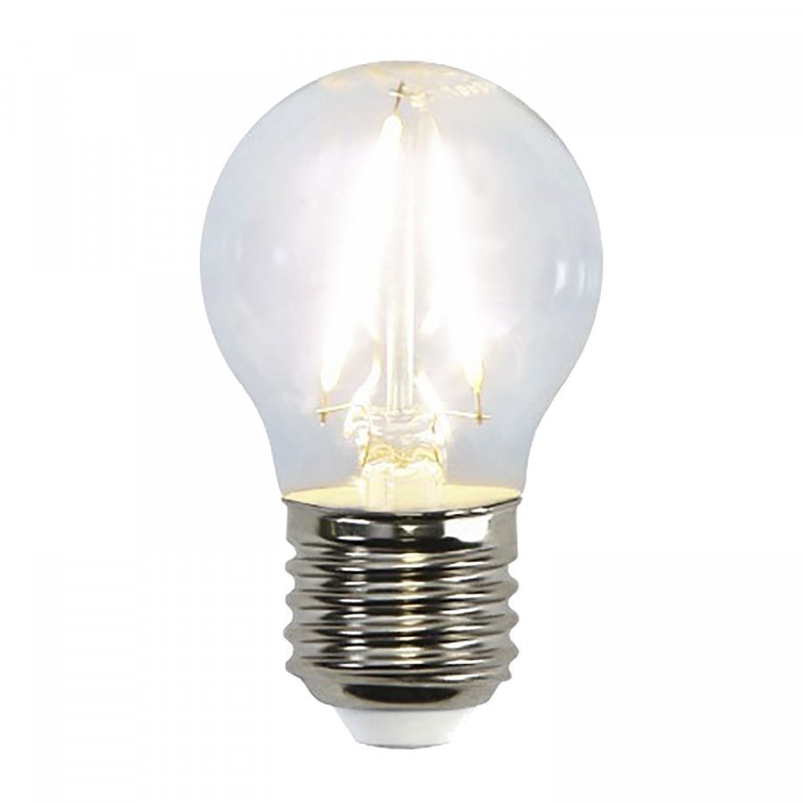 LED-lamppu E27 G45 filament merkiltä Star Trading. Valonlähteen 2,6W vastaa perinteisen hehkulampun 25W. Lampun pitkä paloaika on n. 15000 tuntia ja valovirta 250 lumenia tekee LED-lampusta tulevaisuuden valonlähteen. Valinta niille, jotka haluavat kestävän ja energiaa säästävän valonlähteen. LED-lamppu säteilee lämmintä valkoista valoa.