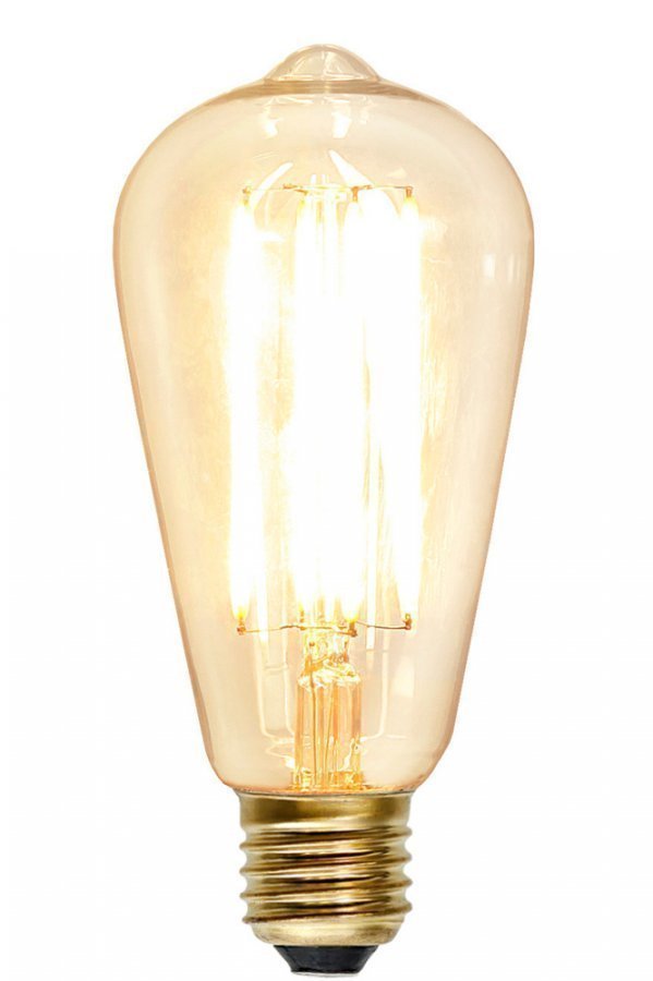 Mitat: leveys 6,4, korkeus 14,2 cm. LED-koristelamppu. Voidaan käyttää himmentimen kanssa. E27-lampunkanta. 2200 kelvin, 320 lumen. 3,6 W. Energialuokka A+.