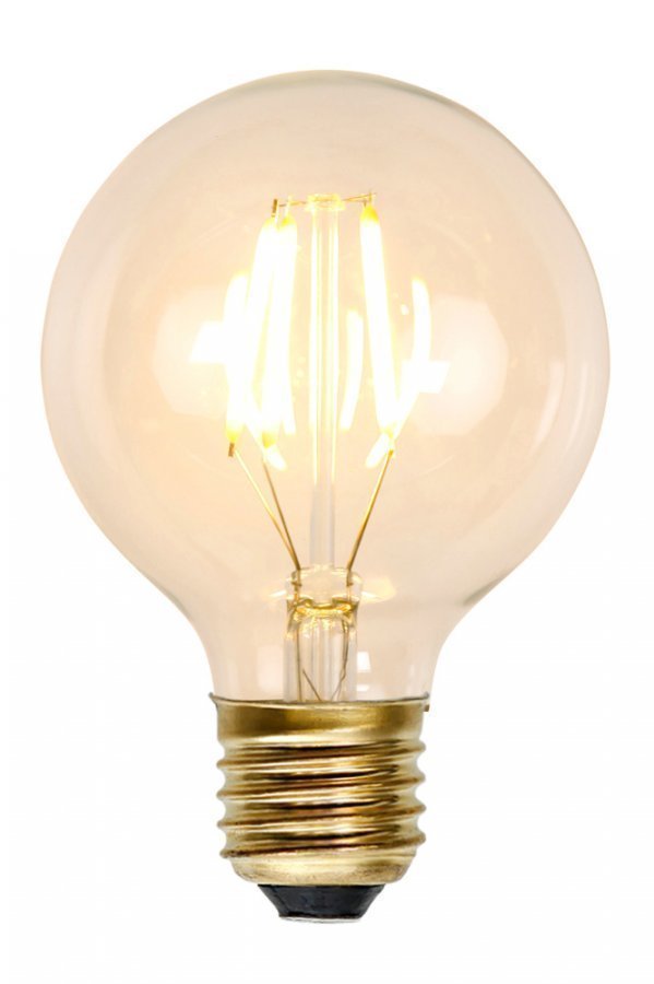 Mitat: Leveys 8, korkeus 12,2 cm. LED-koristelamppu. Voidaan käyttää himmentimen kanssa. E27-lampunkanta. 2200 kelvin, 140 lumen. 1,5 W. Energialuokka A++.
