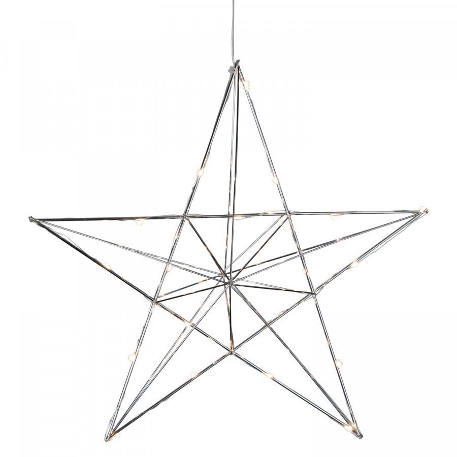 Koristeellinen kromattu metallitähti sisäkäyttöön. Tähdessä on 20 LED-valonlähdettä, joissa on lämpimän valkoinen loiste. Kaunis koriste ikkunalle.
