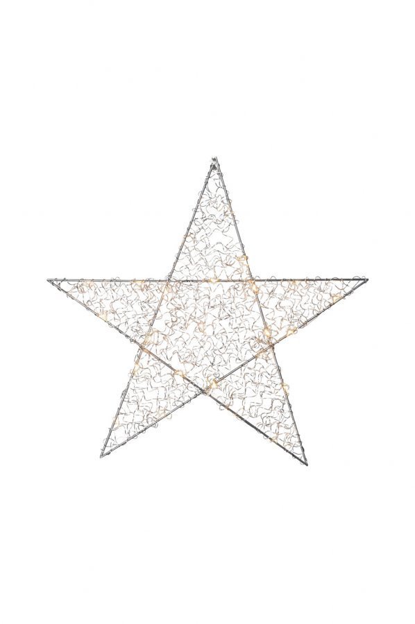 Tyylikäs metallinen, ripustettava valotähti. 24 LED-lamppua (eivät vaihdettavissa). Leveys 47 cm. 3,5 m:n johto.