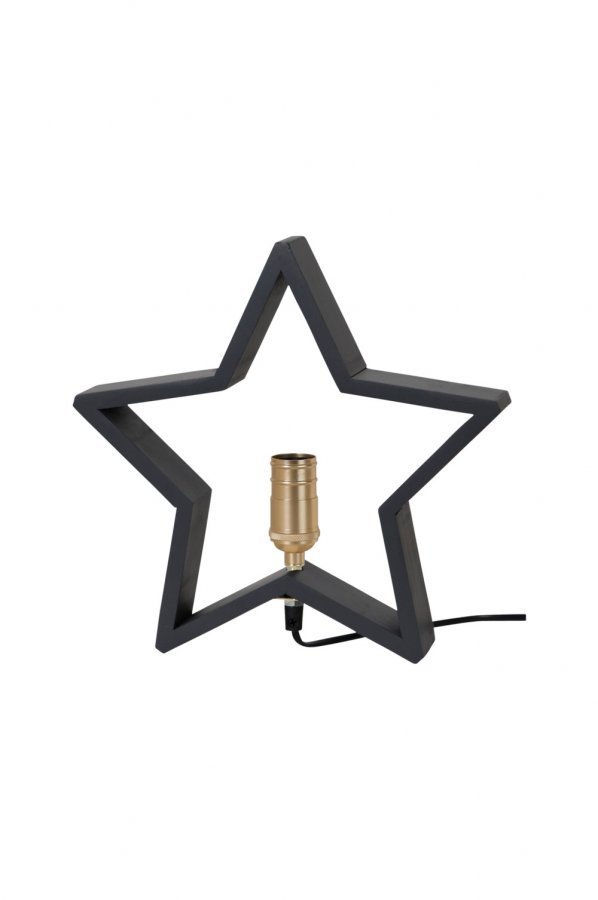 Puinen tähti, jossa metallisokkeli. Kaunis koriste pöydälle tai ikkunaan. Yhdistä tähteen tyylikäs valonlähde. Korkeus 29 cm, leveys 30 cm, syvyys 9 cm. Lampunkanta E14. Johdon pituus 180 cm. Valonlähde ei mukana.