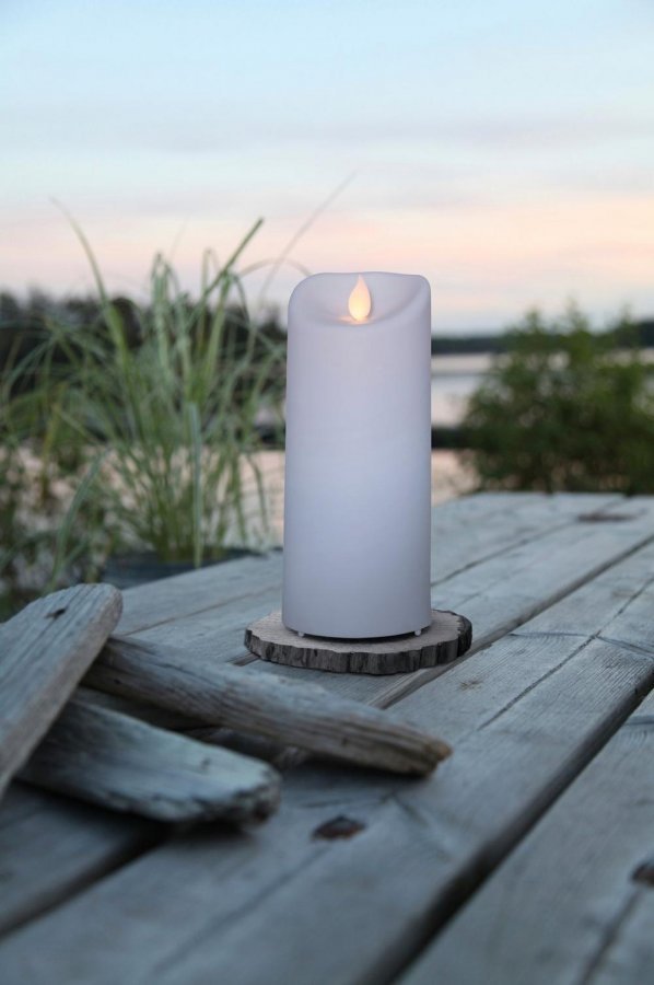 Hieno ja aidonnäköinen valo, jossa on lepattava liekki. Sopii ulkokäyttöön. Siinä on ajastintoiminto, jonka avulla se on helppo asettaa valaisemaan tiettyyn aikaan. Toimii 2 AA-paristolla. Tilaa paristot erikseen.