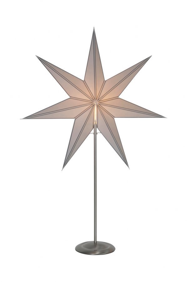 Sisäkäyttöön tarkoitettu valotähti, jossa messinkinen jalka. Sopii ikkunaan ja pöydälle. Tuo mukavaa joulutunnelmaa kotiin. Leveys 60, korkeus 88 cm, syvyys 16 cm. 1,8 m johto, jossa virtakytkin.