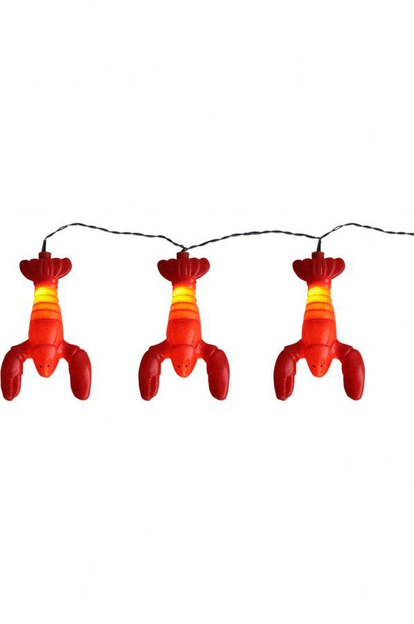 Juhlaköynnös, jossa oransseja rapuja. Ulkokäyttöön. Upea valoköynnös kohottaa taatusti tunnelmaa rapujuhlissa. Valoköynnöksessä on 8 LED-valoa.
