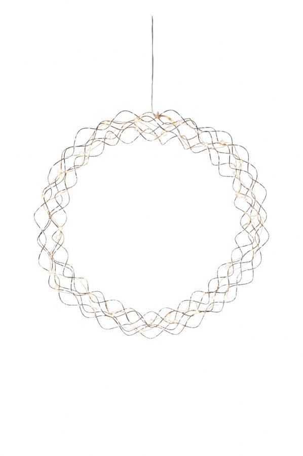 Kaunis ripustettava kranssi. Koko 45×45 cm. 50 LED-lamppua (eivät vaihdettavissa). 3,5 m:n johto.